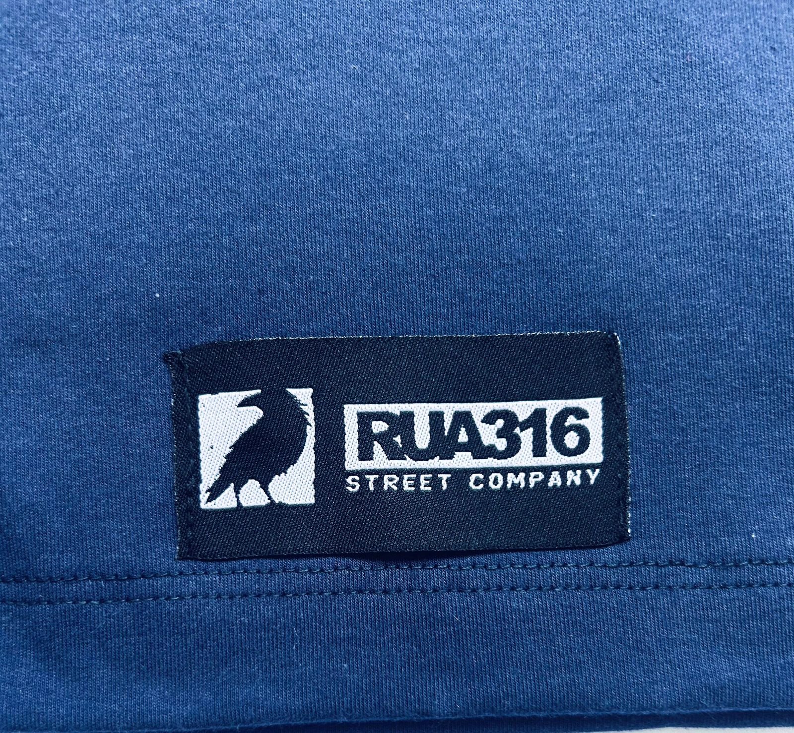 •Logo Rua316 aplicada em Silk screen em PUFF (alto relevo) no peito